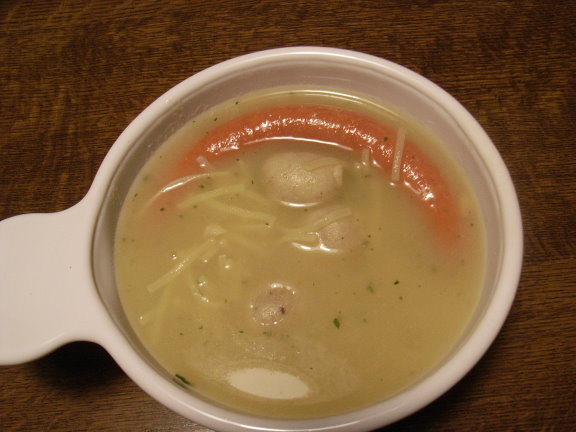 es gab eine deftige -gemüse-kartoffelcreme-suppe- mit einlage