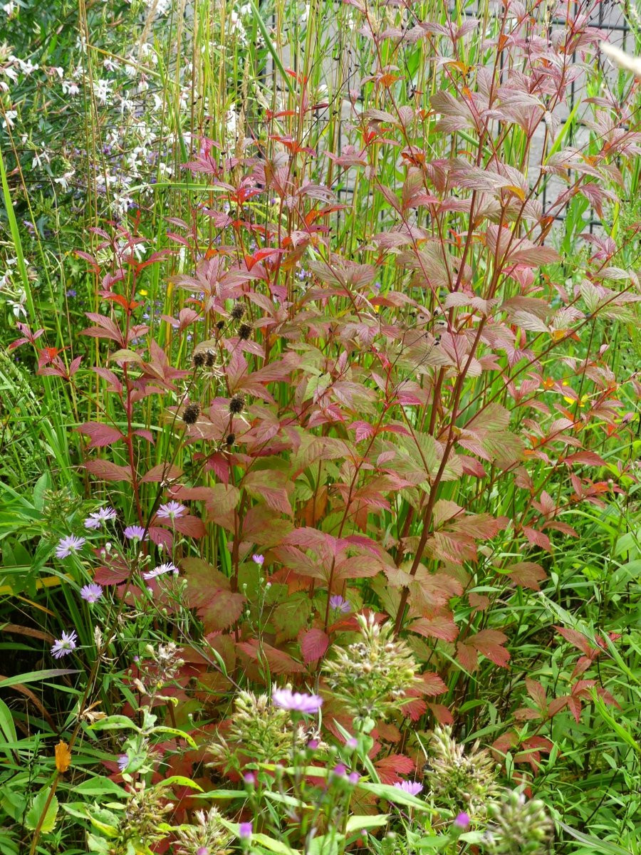 Aktuell gibt es noch keine Herbstfärbung. Interessant ist übrigens, dass mich jeder Rosenbesucher im Juni auf die Gillenia anspricht.