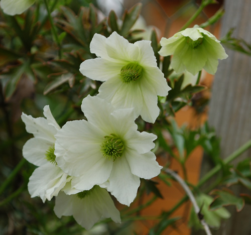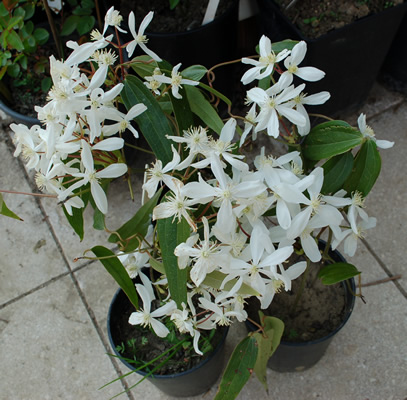 .Die grösseren Clematis lasse ich über den Winter gut geschützt draussen stehen.Denn die, die ich im kalten Wintergarten überwintere, sind dannach sehr weich, da stehen die Schnecken regelrecht Schlange um sich daran zu verköstigen und es bleibt meist nur der leere Stab übrig davon! >:(Ueber den Winter sind mir aber 3 sehr grosse schon Jahre draussen eingepflanzte Clematis Armandii erfroren.Ob sie wohl wieder von unten austreiben, oder ob es endgültig aus ist mit ihnen. Was denkst Du?Diese war letztes Jahr mehr als 2 m hoch, (ein Steckling vor 3 Jahren)