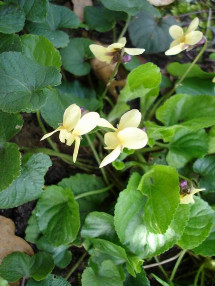 Meine hübschen duftenden Veilchenteppiche des vorigen Jahres haben in diesem Winter sehr gelitten, vielfach gibt es nur noch ein Netz aus verdorrten Stengeln, bei dem nur ein echter Optimist noch Leben vemutet. Da freut es mich dann umso mehr, dass sich, bisher fast unbemerkt und an eigentlich unpassender Stelle, dieses nette gelbe Veilchen angesiedelt hat, mit dem offenbaren Vorhaben, sich dort auszubreiten. Meinen Segen hat es! es ist vermutlich sowas wie "Irish Elegance" oder "Sulphurea".