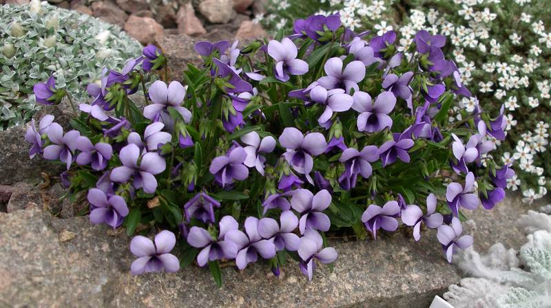 HAllo,hier blüht z.Zt. die rosa Form von Viola rupestris: