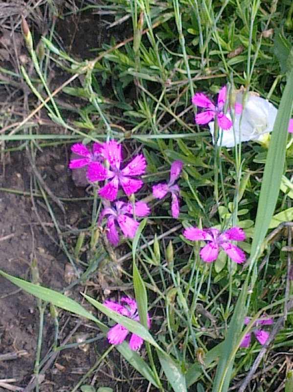 Und am Rand der Wiese eine kleine Nelke - ich vermute Heide-Nelke.