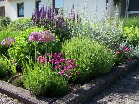 Mame,Dein Beet gefällt mir sehr gut !Die Farbzusammenstellung von hellem und dunklem Violett mit dem grün-gelb ist sehr schön. Auch alles schön von der Höhe gestaffelt. Remontiert S.n. Caradonna gut? (habe bisher nur Blauhügel)ach, und das G. cinereum ist ganz allerliebst