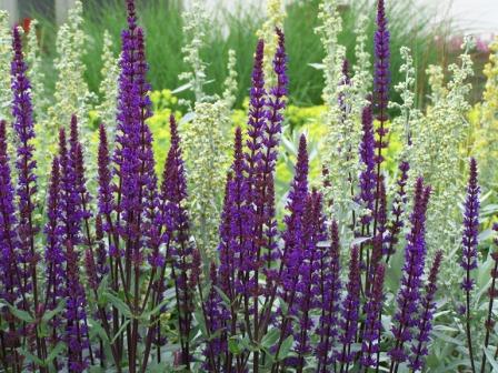 Die etwas höheren Stauden sind so gewählt, dass sie nach dem Rückschnitt remontieren (Salvia `Caradonna´, Artemisia `Valerie Finnis´, Alchemilla..). Es sind zwar keine ausgefallenen Stauden drin, aber es sieht wirklich ganzjährig und von allen Seiten gut aus.