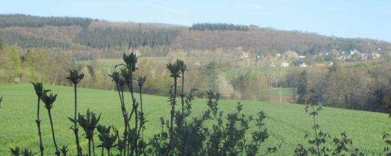 Dem kalten Wetter geschuldet sind die Wälder immer noch kahl, was eher ungewöhnlich ist bei uns für Ende April. Das Bild ist von heute früh und zeigt eine Landschaft auf 200-300 Meter Höhe.