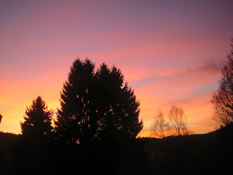 Wir hatten hier im Hochtaunus einen sonnigen und warmen Tag mit Temperaturen knapp über 20°C, jetzt haben wir 11°C und es gab einen herrlichen Sonnenuntergang: