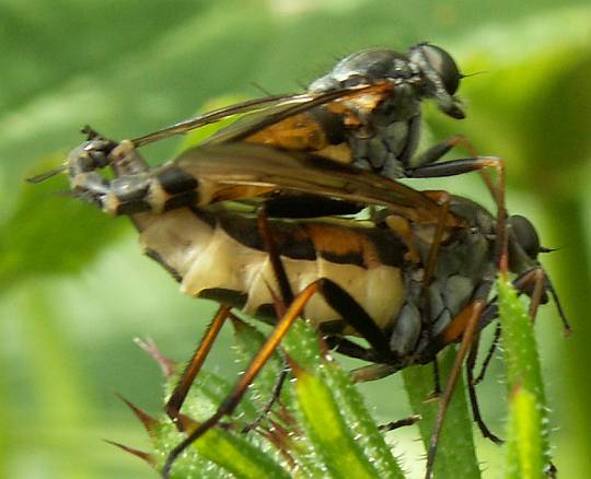 Hier gehen in den letzten Tagen die Blattwespen ihrem Vermehrungstrieb nach. Ausnahmsweise ist diesmal das Weibchen (li.) das schönere Teil