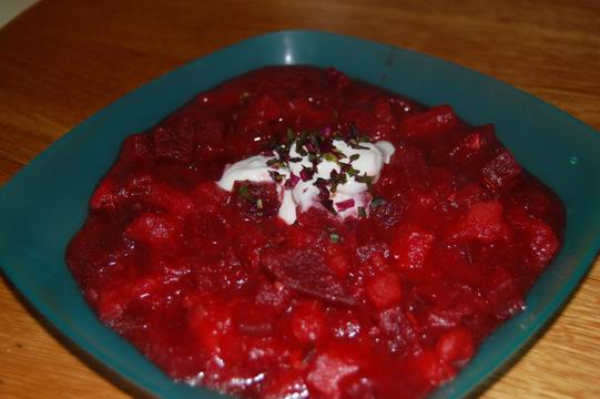 In der Herbst- und Winterzeit mag ich gerne Rote Bete als Eintopf. Wie immer nach Gefühl und Vorräten gekocht. Mit etwas Schmand drauf, fanden es auch die Kleinen lecker - es wurde ja dann rosa