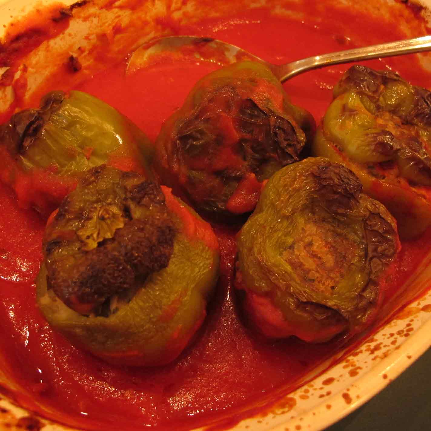 Leider vertrag ich Lauch nur in homöopathischen Mengen :(Hier gab es die letzten gefüllten Paprika der Saison. Hab erst nach dem Essen ans Fotografieren gedacht, deshalb fehlen schon ein paar, die Kartoffeln waren auch schon weg: