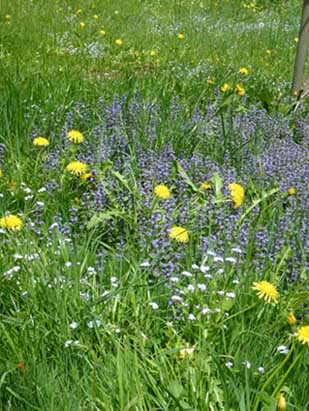 Bei euren Bildern frisst mich im Frühjahr immer der Neid, wir hängen hier einige Wochen nach. Aber langsam wird es auch hier grün und dicht.Heute musste ich das erste Mal mähen, schweren Herzens, zumindest mal Wege in die blau-gelbe Fläche: