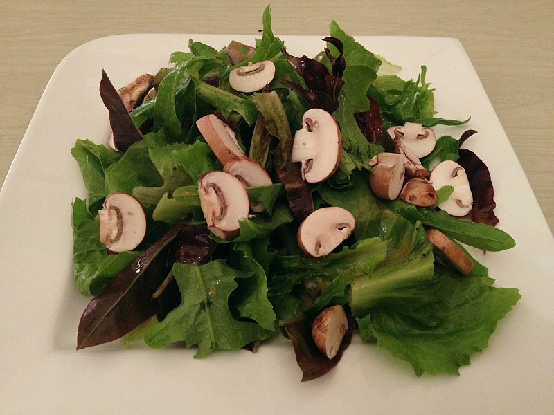 und abends, wieder daheim, einen gartensalat mit kaufchampignons