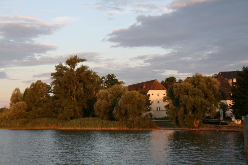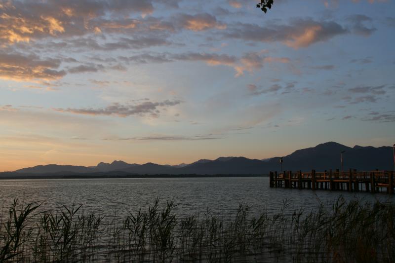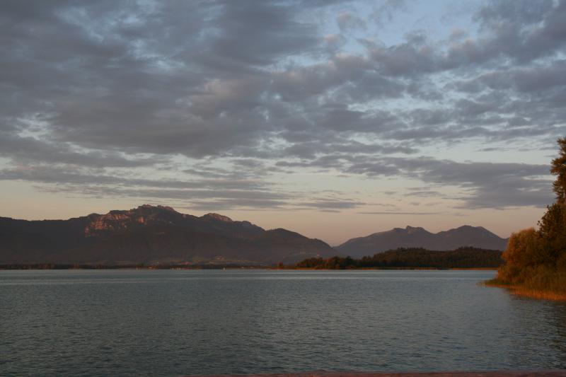 . Die Fraueninsel ist schon eine besondere Insel :DIm Hintergrund die Kampenwand von der Sonne angeleuchtet.