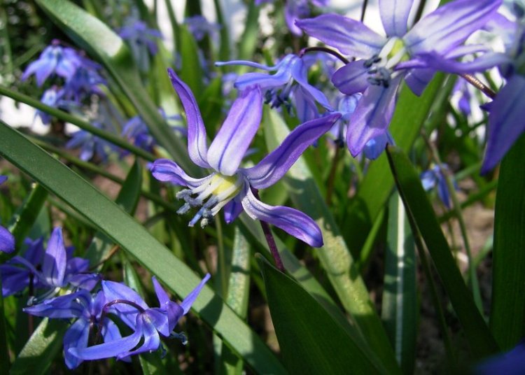Auch die normalen Scilla sibirca heben bei diesem schönen Wetter die Blütenblätter.