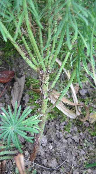 Ich muß nochmal auf die Euphorbia cypasrissias zurückkommen (#81).Inzwischen habe ich mal zwischen die Wedel geguckt und gesehen, dass da jetzt nur drei Stämmchen (??)sind, von denen die anderen Wedel abzweigen. Ist das so bei E. cyp.?