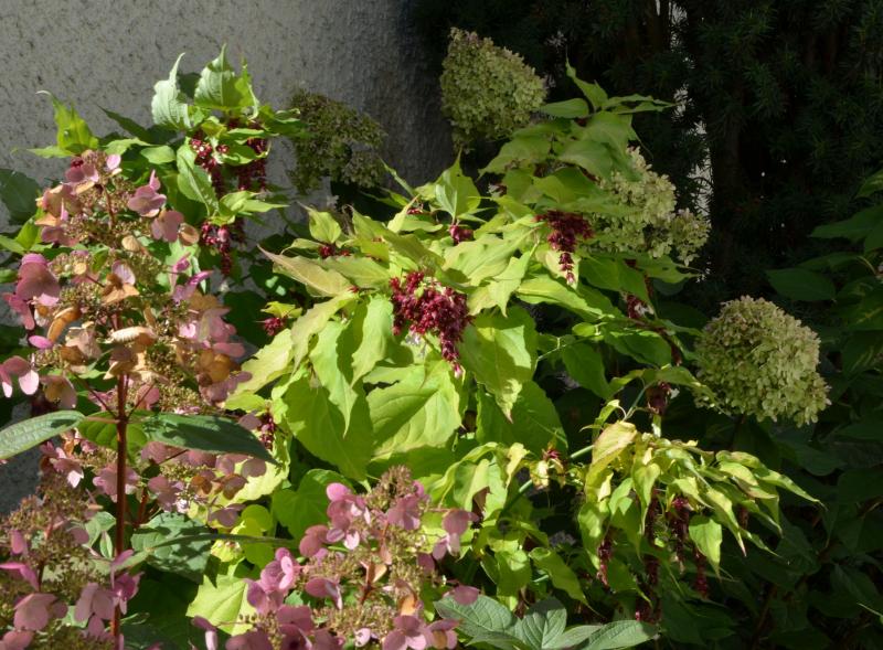 Leycesteria tickt etwas anders - zumindest hier friert sie im Winter runter und baut sich jedes Jahr komplett neu auf.