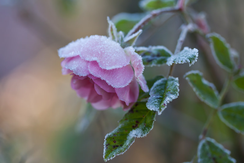 Schön, die Winterrose, hier ist der Frost noch nicht in den Garten gekommen, obwohl man draußen Autos freikratzen musste.