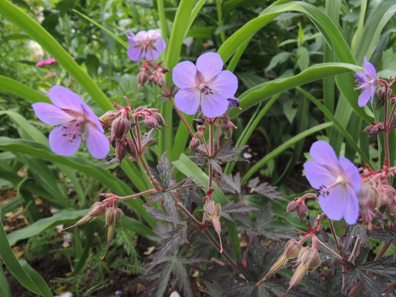 Mich erinnerten die Blätter an Baptisia, aber die Blüten stimmen nicht ;)Hier kommt noch ein Geranium mit sehr schön dunklem Laub.Die Blätter erinnern mich an Jakobsleiter, aber die Blüten sind nicht offen genug dafür.
