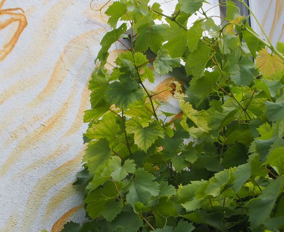 Der blaue empfindlichere linke davon der die Teilchlorosen hat rankt auch noch um die Ecke. Sind sicher noch mal 6 Meter.