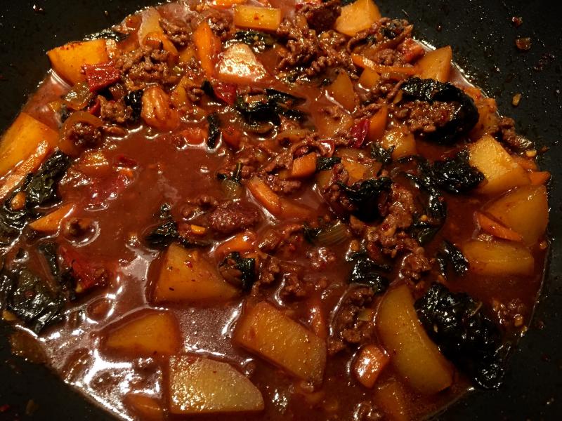 Sauerscharf sieht eher gewöhnungsbedürftig aus - auch wenn es gut war. 8)Gestern ga es hier "Steinsuppe", einen Eintopf mit Wirsig (aus dem Garten), Kartoffeln, Porree, Möhre, Paprikapulver, Knoblauch, Thymian, Hackfleisch in Knochenbrühe, schnmeckte klasse, war optisch aber auch eher bescheiden.