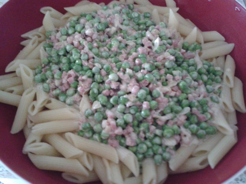 Wir hatten Penne mit Mascarpone-Erbsen-Schinken-Sauce :D
