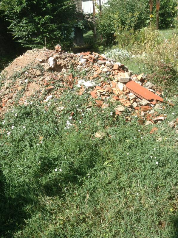 vielleicht könntest Du ja den Schutthaufen mit einer Folie abdecken, dann hättest Du gleichzeitig auch die angrenzende Fläche unkrautfrei zur Bepflanzung (je nachdem wie lange sie da liegt).