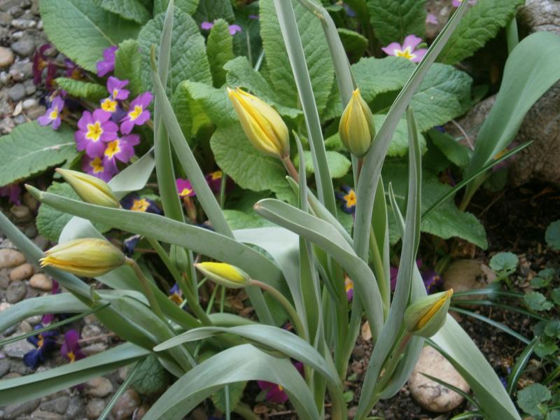Tulipa tarda scheint auch dieses Jahr wieder als letzte unter meinen Wildtulpen in Blüte kommen zu wollen; da sieht man noch so gut wie gar nichts von den Knospen. Dafür geht es jetzt bei T. kolpakowskiana los.