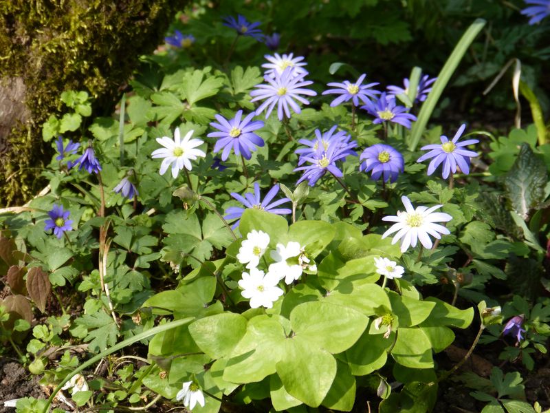 Hier blühen aktuell die Anemone blanda mit den Primeln um die Wette.
