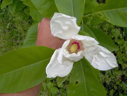 Nicht schlecht, cornishsnow: Charles Coates ist M. sieboldii x M. tripetala.Siehe hier: Magnolia Cultivar Checklist - übrigens auch sonst eine sehr gute Quelle für Infos über Herkuinft und Eltern von Magnoliensorten.