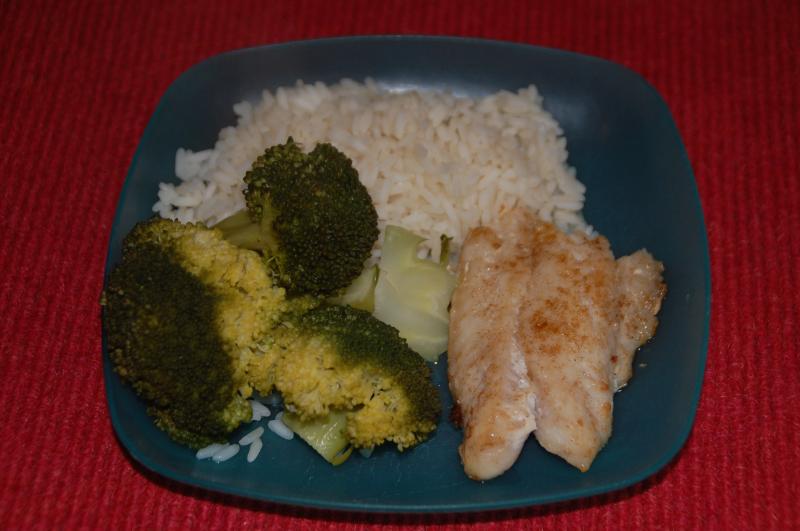 Reis mit Broccoli und Rotbarsch (mit Koriander und Salz gewürzt)
