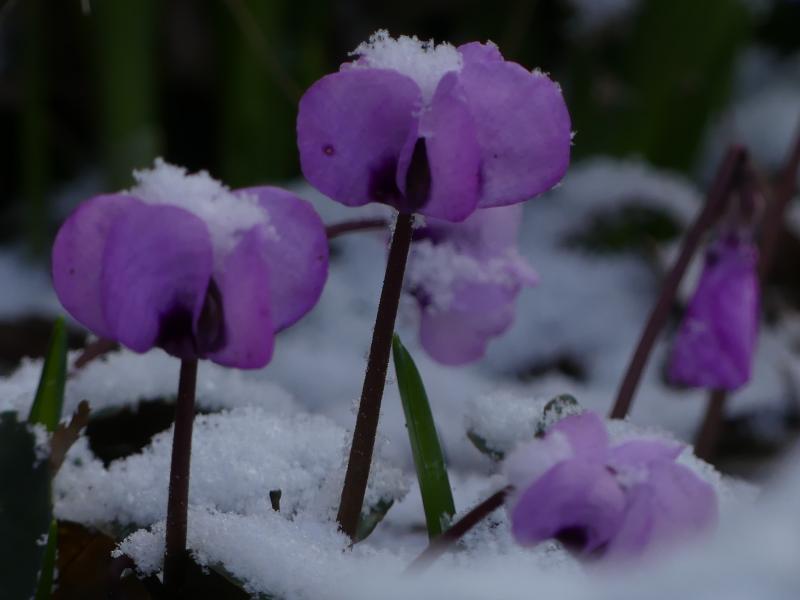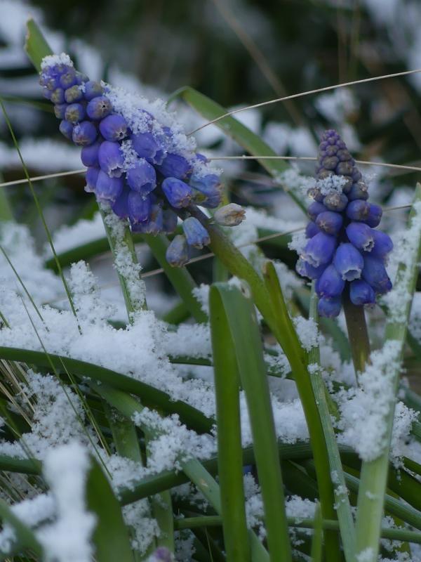 Inzwischen ist das Häubchen aber weg und es ist kälter geworden. Die Cyclamen sind seit gestern Nachmittag unter einer großen Haube (drei Lagen Vlies), den Glöckchen macht die Kälte eher nichts und das Elend der übrigen, insb. Iris histrioides "George" wollte ich mir heute noch nicht antun.