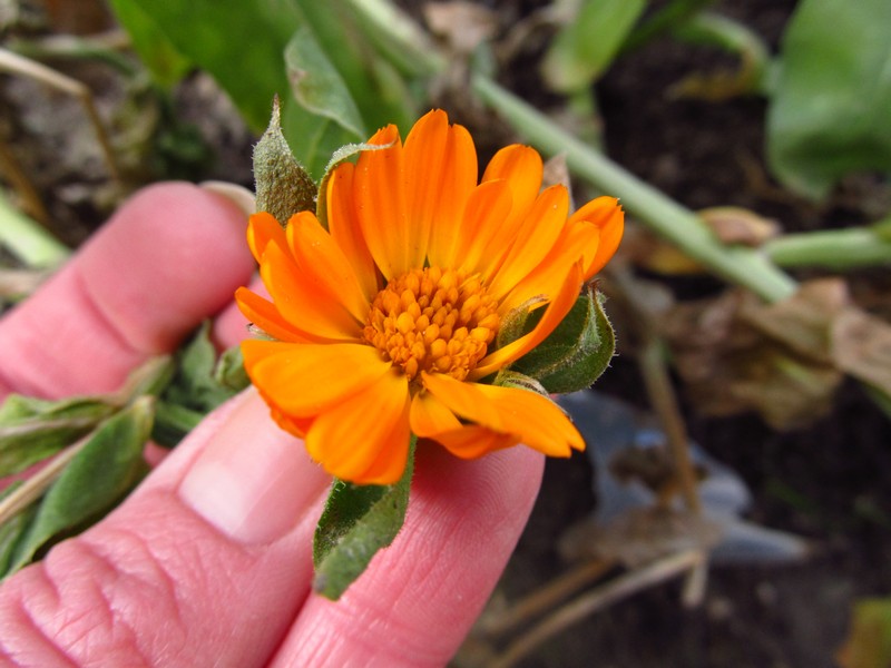 Eine Ringelblume hat es über den Winter geschafft und die Blüte trotzt sogar den inzwischen etwas kühleren Temperaturen.
