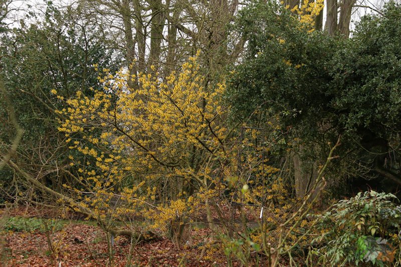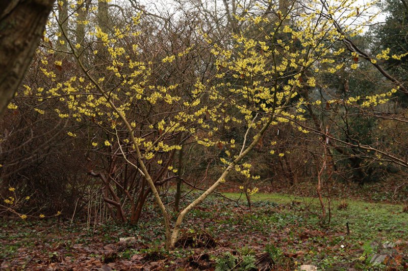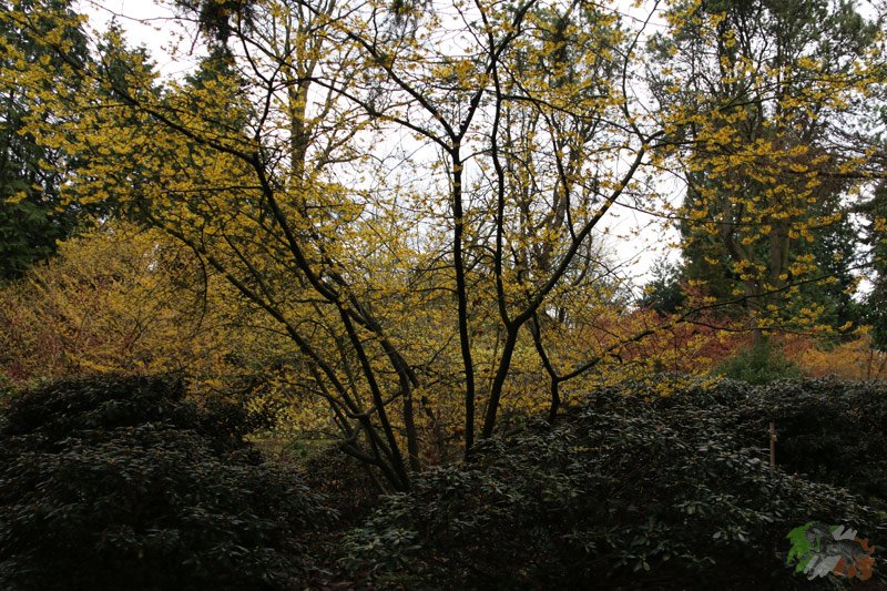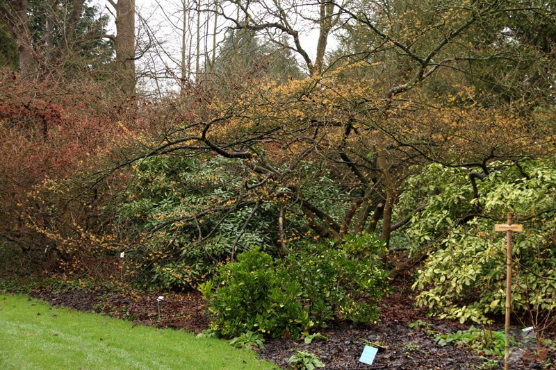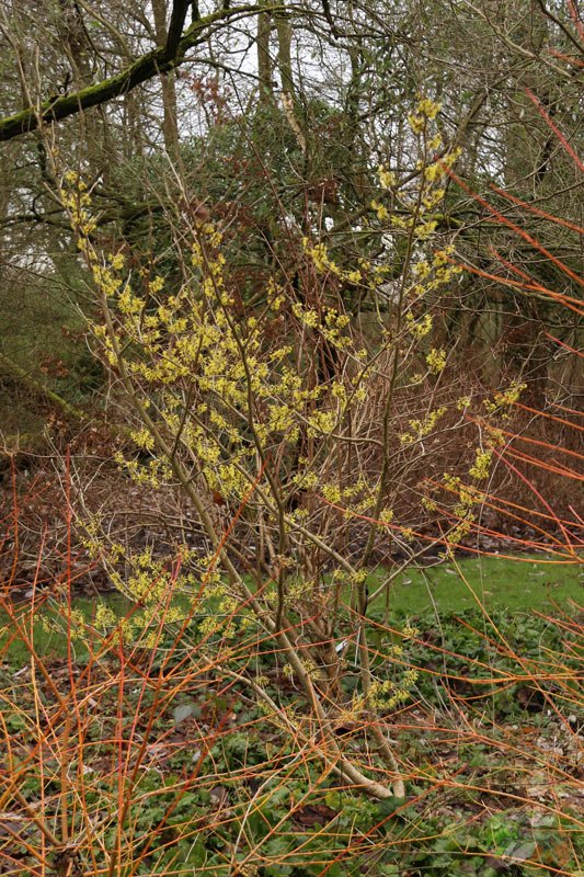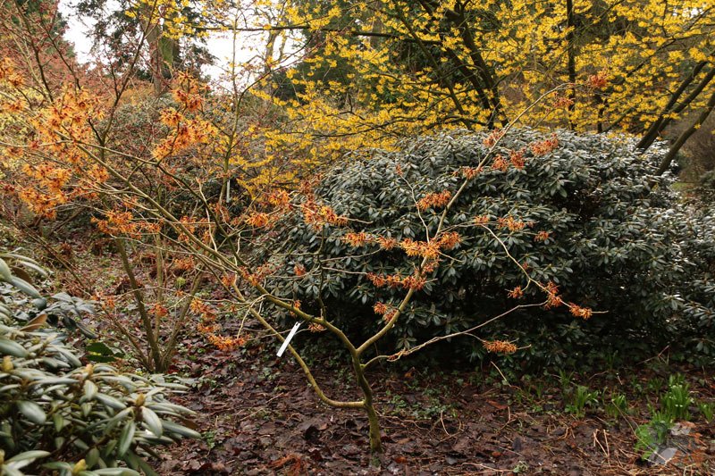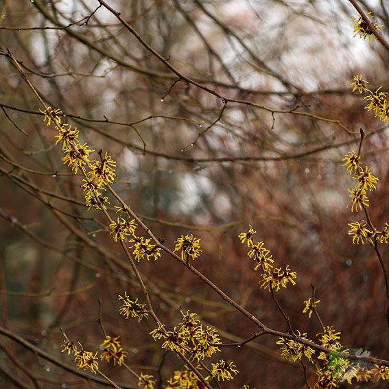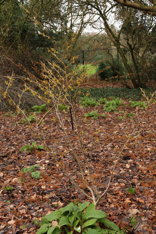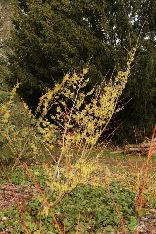 Diese unbenamste Hamamelis steht am Rand des Rosengartens und duftet hinreißend.