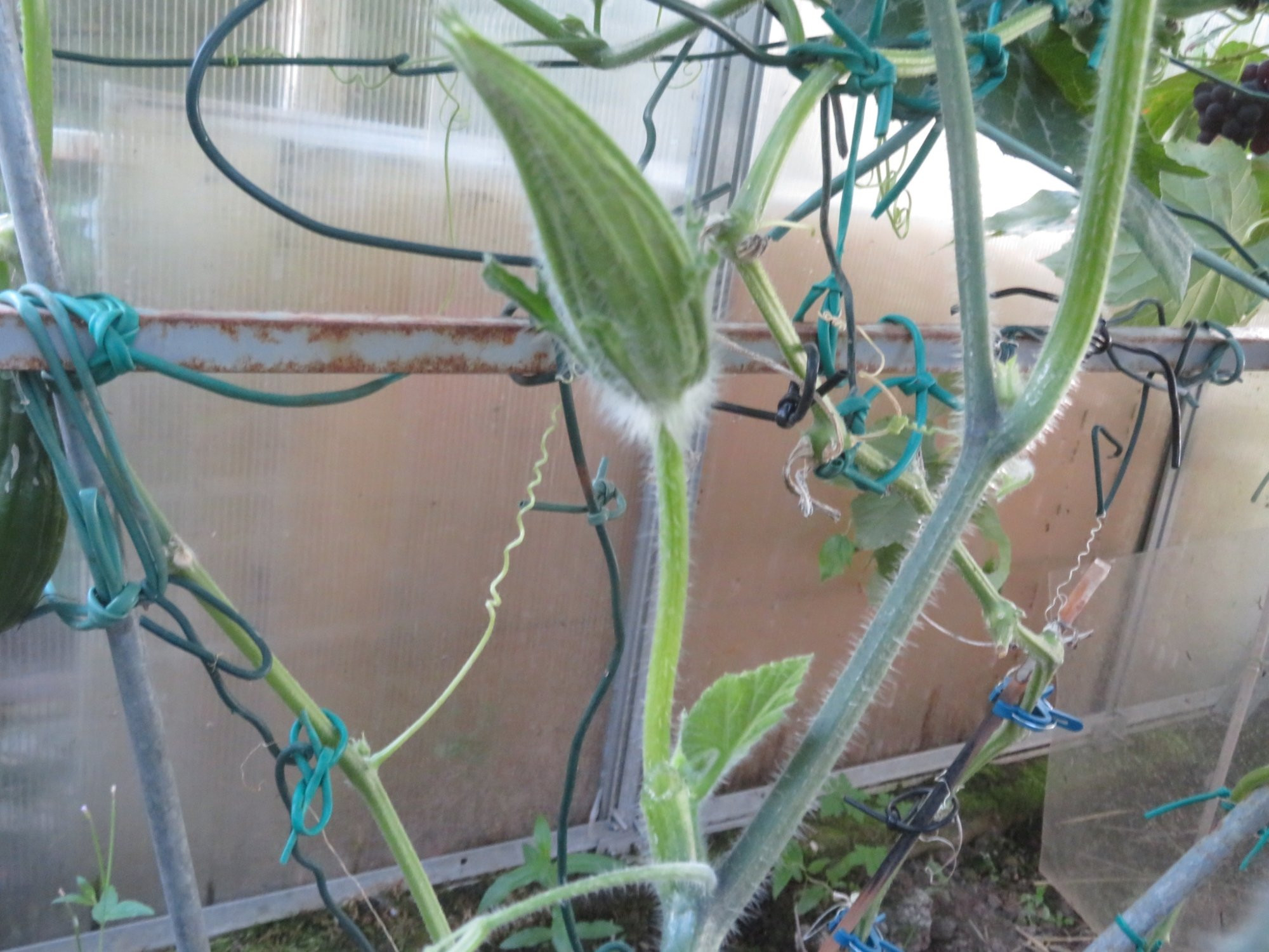 endlich die erste Embryonalkürbis Blüte. Meine Frage soll ich die andern ich vermute die zahlreichen männlichen Blüten entfernen.
