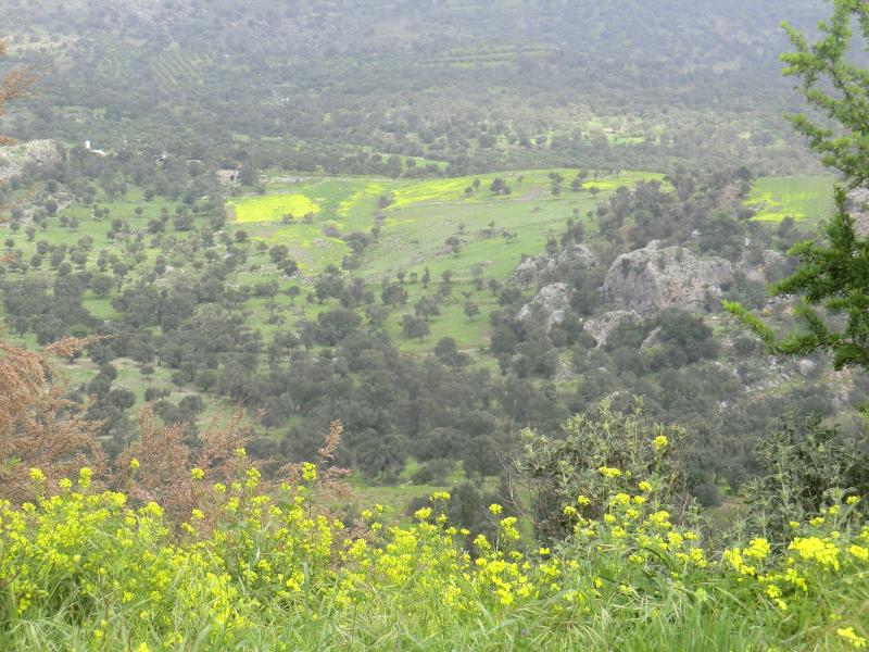 Außerhalb der Olivenhaine, Bienenvölker und Ziegen bzw Schafe gab es auch noch Feldwirtschaft. Volle Wasserzisternen neben schmalen Feldern.