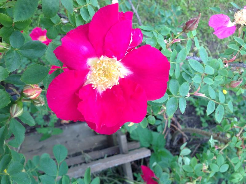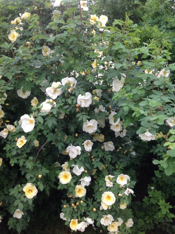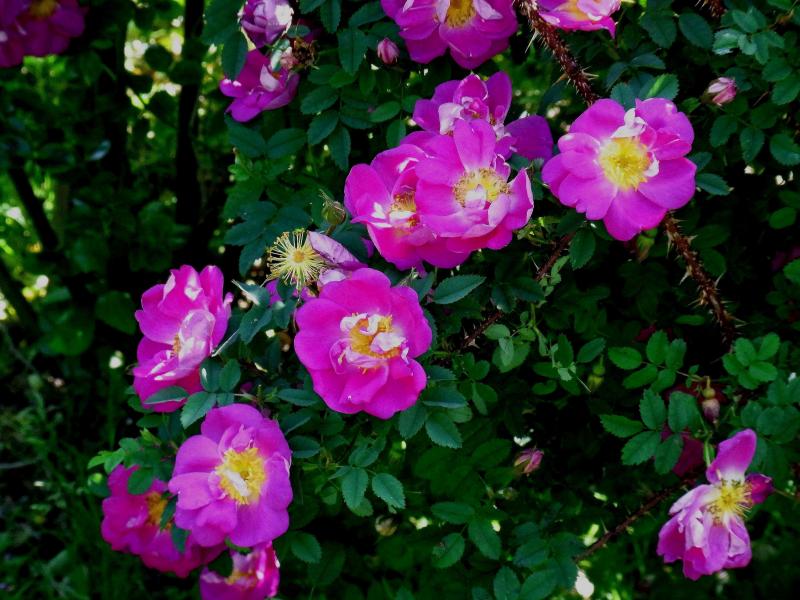 Bei mir blühen nun die Spinosissima-Hybriden, u.a. ´Haspina Violett´: