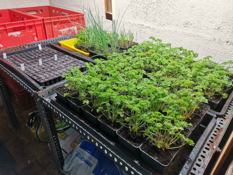 Aktuell steht neben Roggen und Sandhafer für die Katzen Petersilie rum, es war ein Keimtest. Das vor 2 Jahren gesammelte Saatgut ist noch ok.