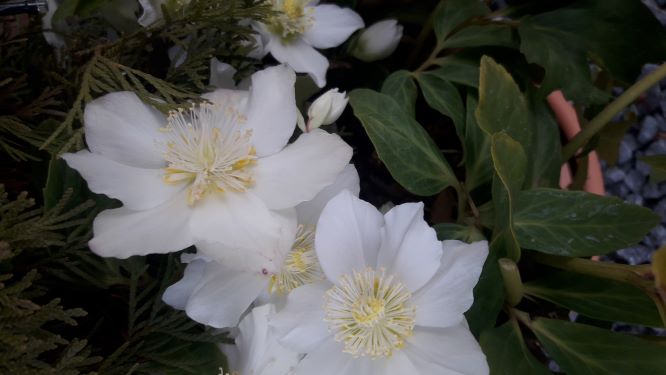 Die Helleborus niger Blätter kontrolliere ich das ganze Jahr auf schwarze Flecken doch sowie die Knospen treiben, schneide ich alle Blätter komplett ab. So sieht man die Blüten viel besser und neue Blätter wachsen bereits während der Blütezeit.