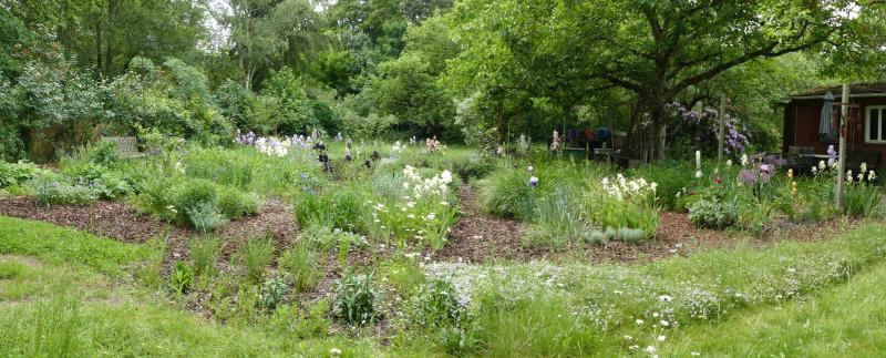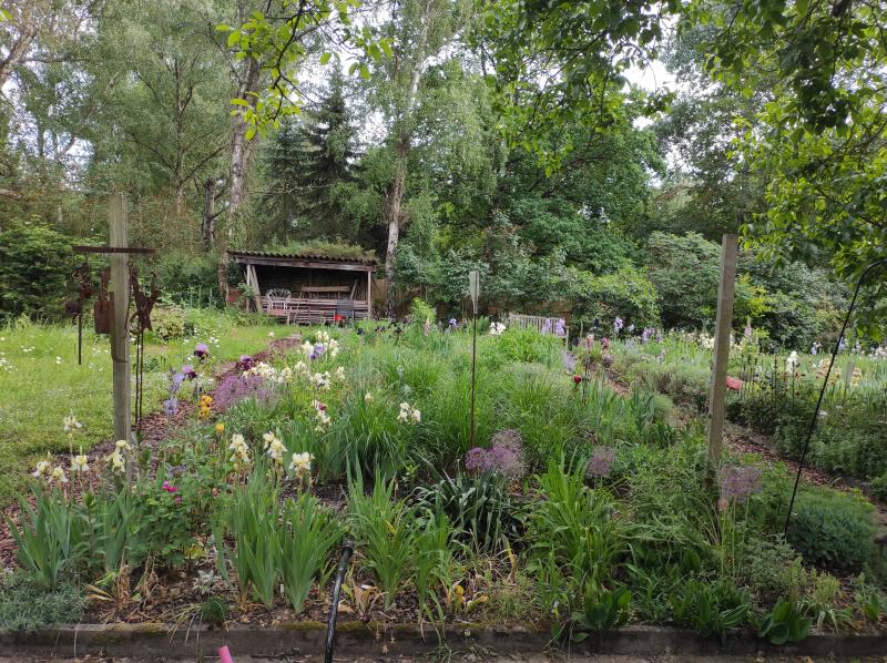 Das üppige Grün, die blühenden Iris und der einladende Sitzplatz am Ende... :D