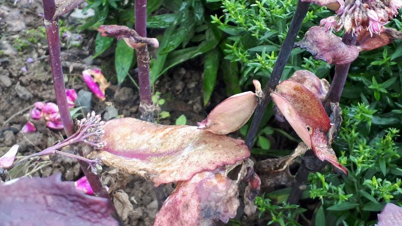 Was ist passiert? An allen anderen Standorten steht sie gut. Tippe auf zu viel Feuchtigkeit bei zu wenig Sonne? Oder ein Pilz, eine Krankheit etc. ??? Foto vom Standort, Details folgen.