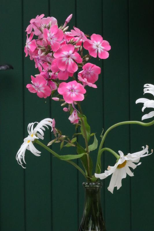 Phlox ´Eva Foerster´war ein Spontankauf letztes Jahr, leider ist nun ein Stängel abgebrochen. In der Vase macht er sich aber auch ganz gut.