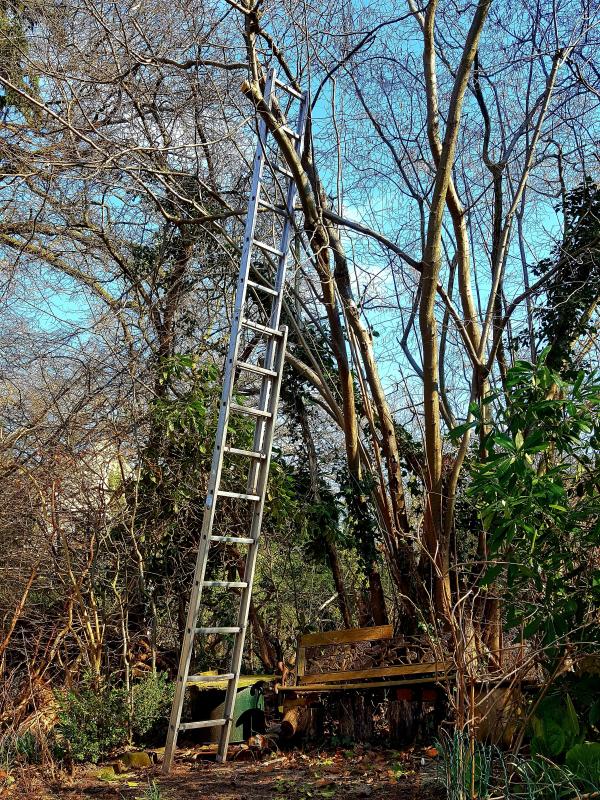 An einer Hasel habe ich ich mich heute auch vergriffen, aber der Reihe nach: Es war wieder herrliches Gartenwetter heute, fast noch besser als gestern, da sonniger, und nicht mehr ganz so windig. Beim Gartenrundgang am Vormittag war's in der Sonne schon schön warm, aber der Wind war erbärmlich kalt, so dass ich wieder nach drinnen gegangen bin. Um 14:00 Uhr habe ich dann aber losgelegt; zunächst habe ich noch die restlichen Staudenstängel am Hang geschnitten und die Beete dort etwas ausgeputzt, jetzt bin ich mit den Schneidearbeiten aber wirklich endgültig durch.