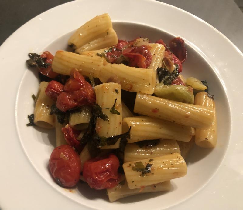 Samstag gab es Pasta mit im Ofen geschmorten kleinen Tomaten, Knoblauch, Schalotten und Petersilie - simpel und lecker. :)