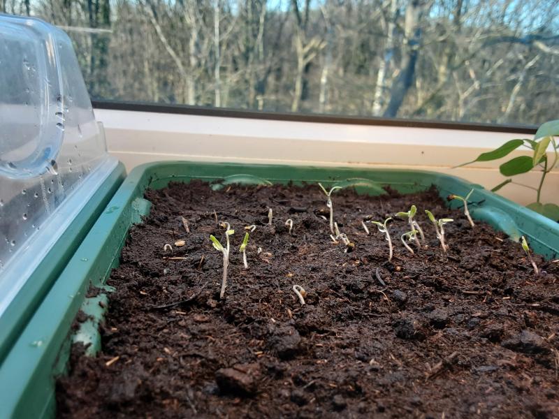 - 18. Februar: die meisten Samen sind gekeimt, auch die im Kühlschrank