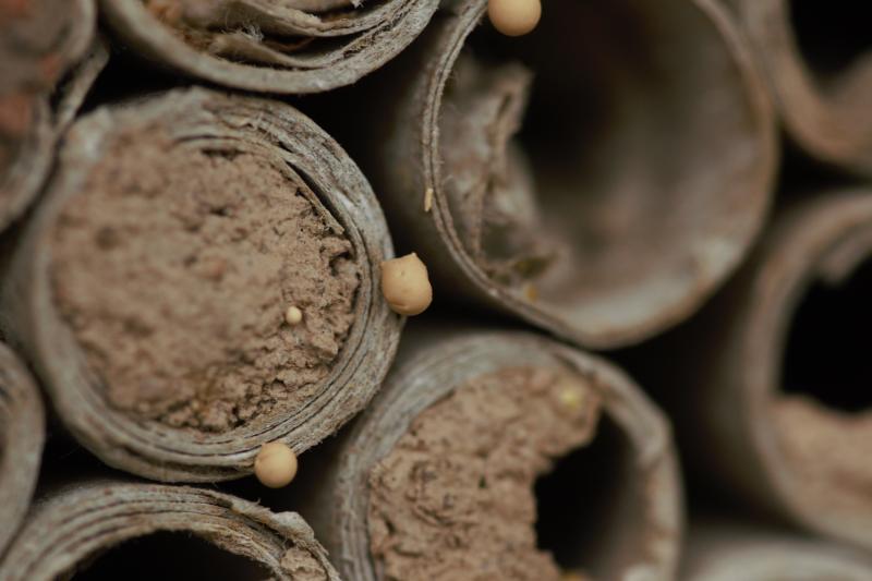 Voriges Jahr in dieser Nisthilfe sind "nur" irgedwelche Schlupfwespen geschlüpft.