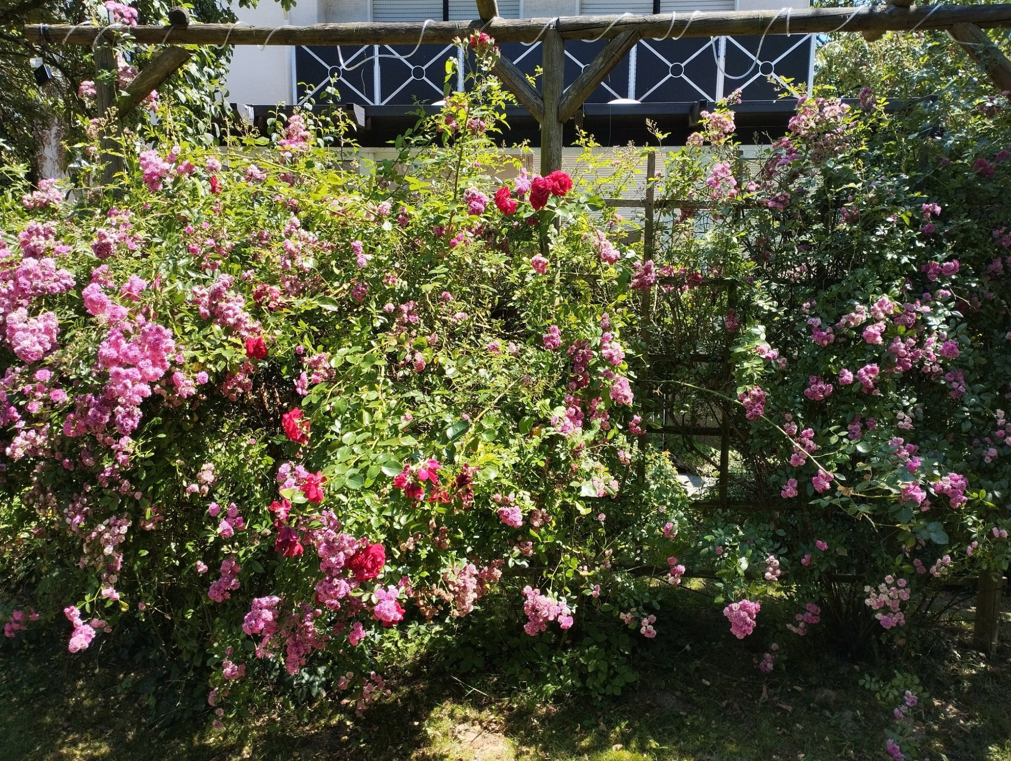 Ja, fuer richtige Rosenbeete ist hier irgendwie nirgendwo ein geeigneter Platz. Wobei dieses "Beet" genau von da sichtbar ist, wo meine Mutter meist sitzt; zumindest solange die Westerland nicht wieder das Fenster zuwuchert. Diese Westerland muss mit einem Platz von 50 Zentimetern auskommen, weshalb ich sie dauernd beschneiden muss; was sie aber anscheinend nicht stoert.Secret Garden hat geschrieben: ↑5. Jul 2025, 13:52 An Deiner Stelle würde ich mein Augenmerk erstmal auf die gut dastehenden Rosen im Garten richten, das sind ja wohl einige Strauch- und Kletterrosen. Wenn die vom Unkraut befreit, geschnitten und gedüngt, prächtig blühen, wird Deine Mutter sich bestimmt daran erfreuen. Und vielleicht gar nicht bemerken, dass die einbeinigen Mickerlinge gerodet sind.Über ergänzende Neupflanzungen würde ich mir erst Gedanken machen, wenn der Garten ansonsten wieder in Schuss gebracht ist. In einem eher naturnahen Garten finde ich wenige große Rosensträucher passender, als kleinteilige Rosenbeete.