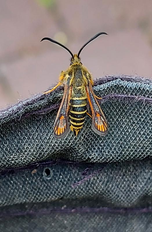 Ein Hornissen-Glasflügler trieb sich heute lange am Fuß einer Weide rum.