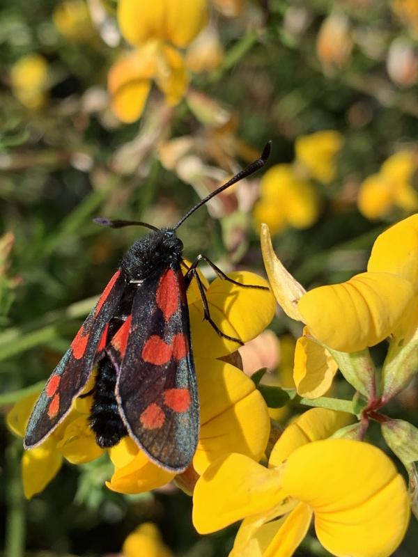Hier gibt's nur Adscita statices, das Grünwidderchen. Aber die rot-schwarzen Arten kenne ich vom Naturparadies Grünhaus und vom NSG Löcknitztal.