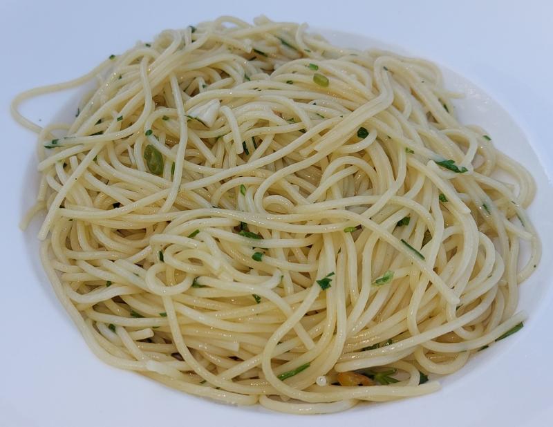 Soeben gab es Spaghetti alla puttanesca - mit gaaaanz frischem Knoblauch. Köstlich. :D