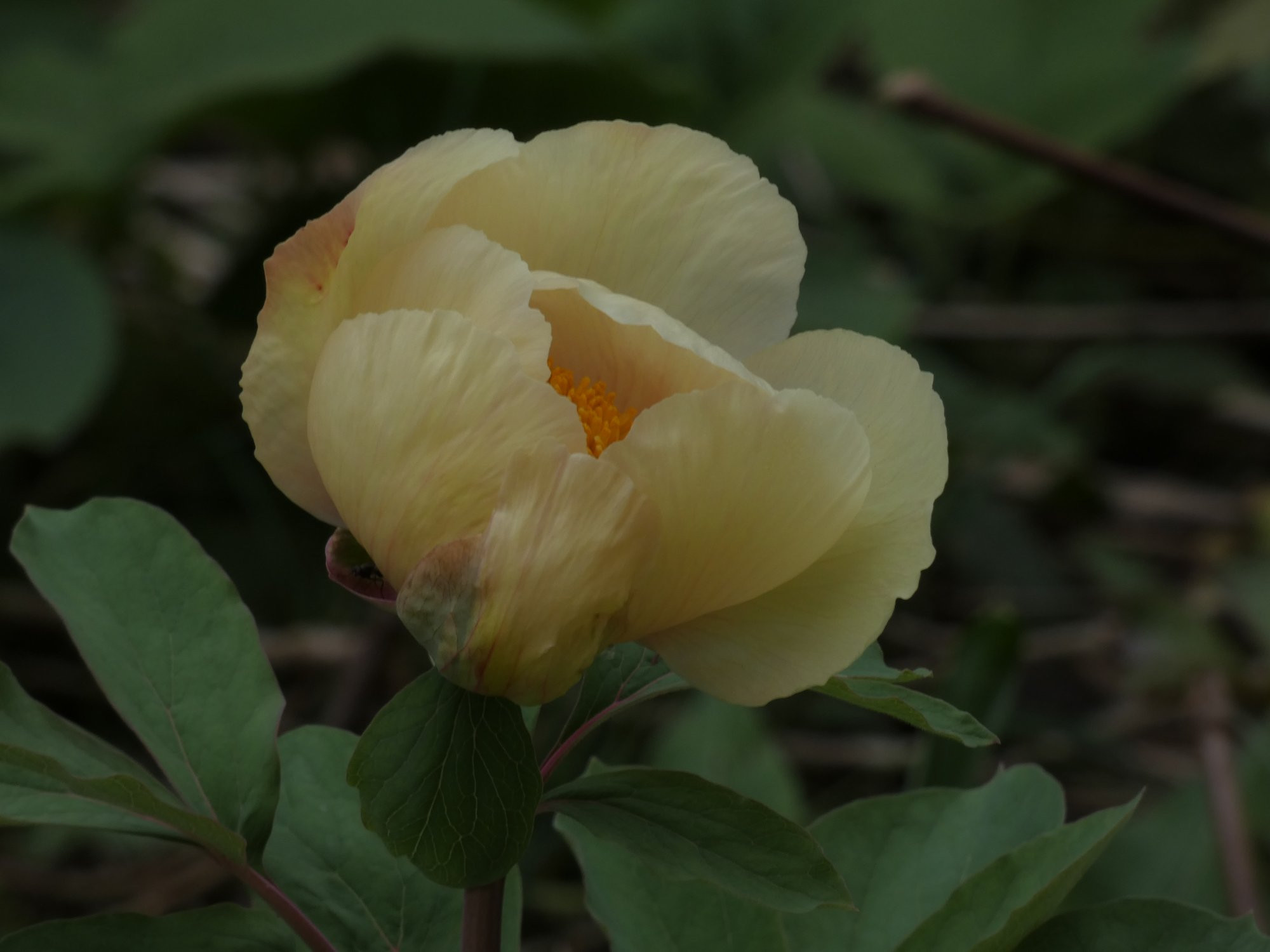 Hier ist heute auch endlich die erste Paeonie aufgeblüht, wie so oft die Mlokosewitschii am Haus vor der warmen Wand. Gleichzeitig war das auch meine allererste Mloko überhaupt, vor +25 Jahren gepflanzt. Entwickelte sich zu einem schönen großen Busch, hatte dann eine Schwächephase (sie haben einfach nicht diesselbe Ausdauer wie andere), scheint aber nach etwas Aufmerksamkeit wieder auf gutem Weg. Was war ich seinerzeit als Jüngling enttäuscht, dass sie keine ganz Gelbe ist, heutzutage gefällt es mir so eigentlich sogar besser... Da heute ein trüber Tag war und ich zu spät raus bin, hatte sie schon wieder halb geschlossen.