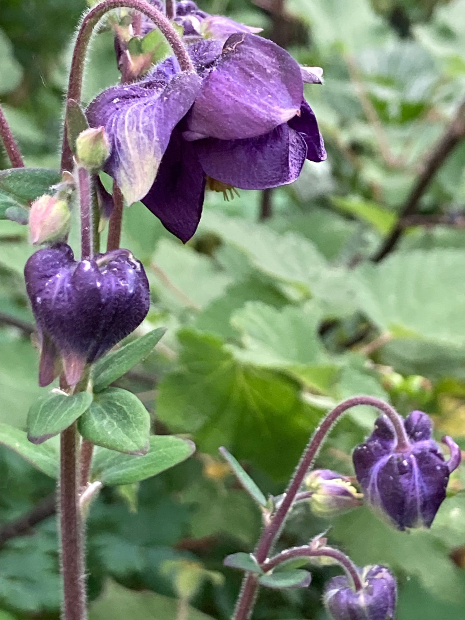 Im eher schattigen Eck blühen Nachtviole, Salomonssiegel, Hasenglöckchen und letzte Tulpen.